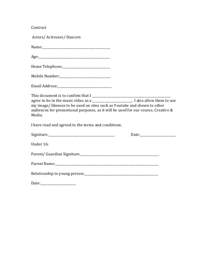 Contract for actors, dancers, actresses