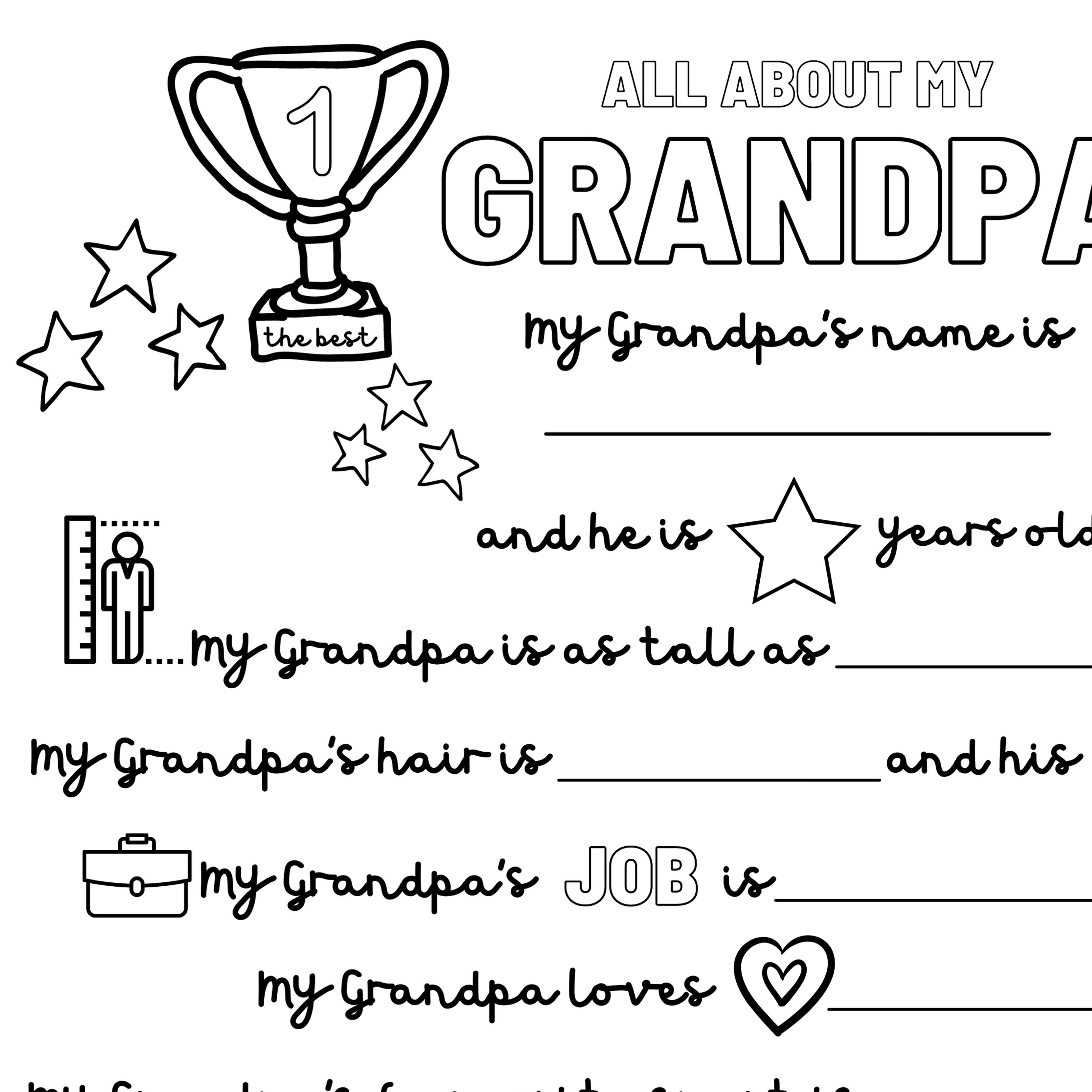 Kids fill in the reason grandpa is receiving the award and color the pictures. One is an all about dad printable while the other one is an all about. Web all about my grandpa father's day fill in the blank printable | gift for grandpa instant digital download | activity with grandpa (162) $ 3.50 Once upon a time, in.