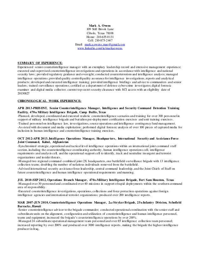 Mark Owens Chase Resume